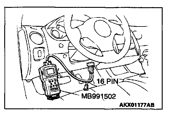 CAUTION: To prevent damage to scan tool MB991502, always turn the ignition switch to the "LOCK" (OFF) position before connecting or disconnecting scan tool MB991502.