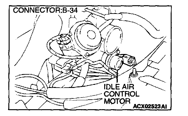 2. Check the operation sound of the IAC motor can be heard after the ignition is switched to the "ON" position (but without starting the engine).