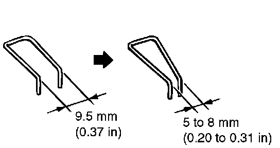 1. Make sure that there is no excessive play at the shift cable end clip. If there is excessive play or the clip is disengaged from the shift cable end, check the clip opening gap. If the gap is more than 9.5 mm (0.37 inch), squeeze the clip until the gap reaches5 to 8 mm (0.20 to 0.31 inch).