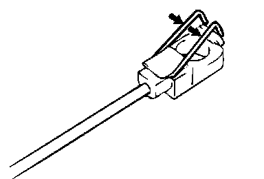Expand the clip at the shift cable end toward the arrow direction, and remove the cable from the shift lever by pushing the shift cable down.