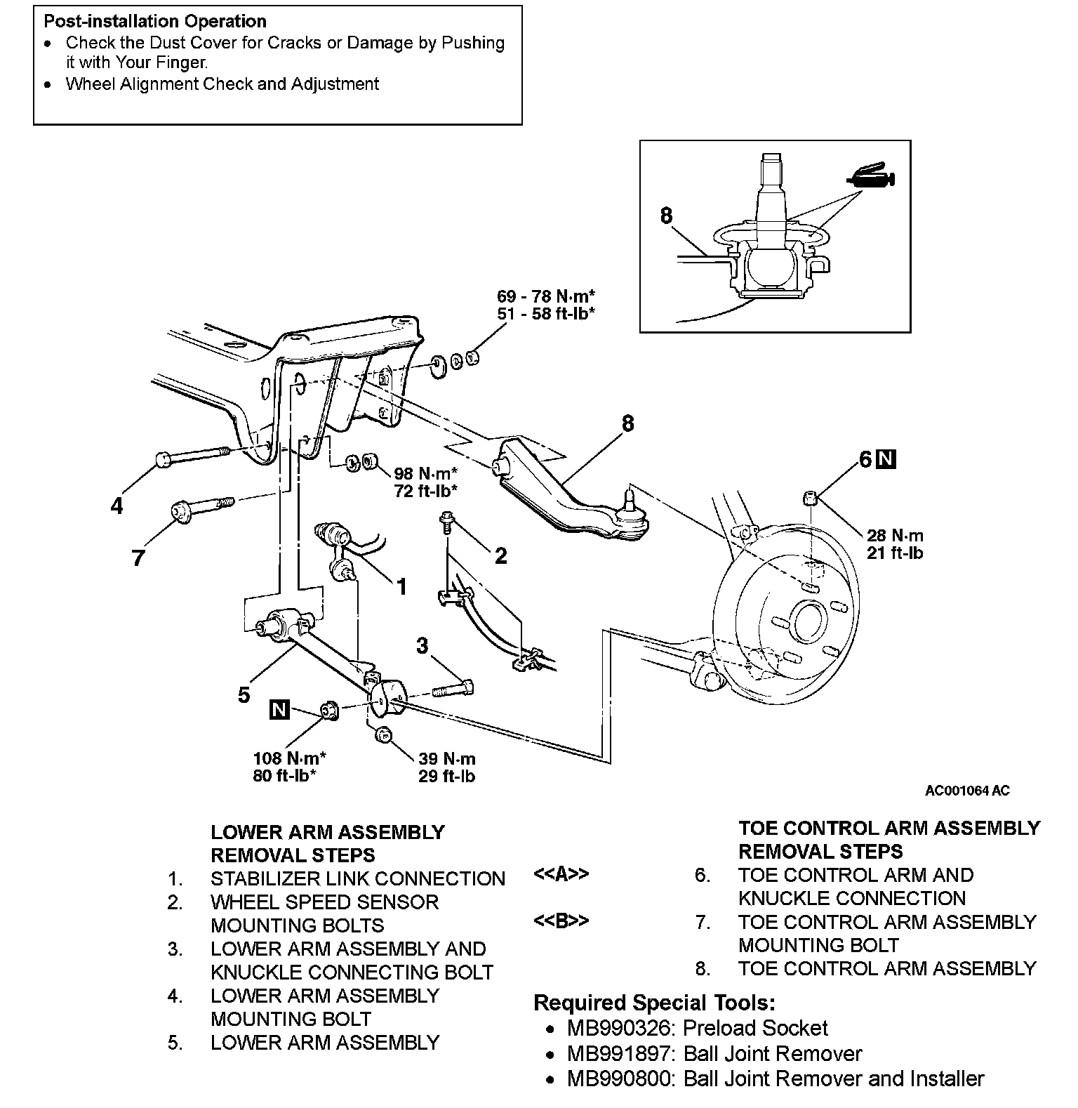 LOWER ARM AND TOE CONTROL ARM ASSEMBLY REPLACEMENT W/ RELATED COMPONENTS