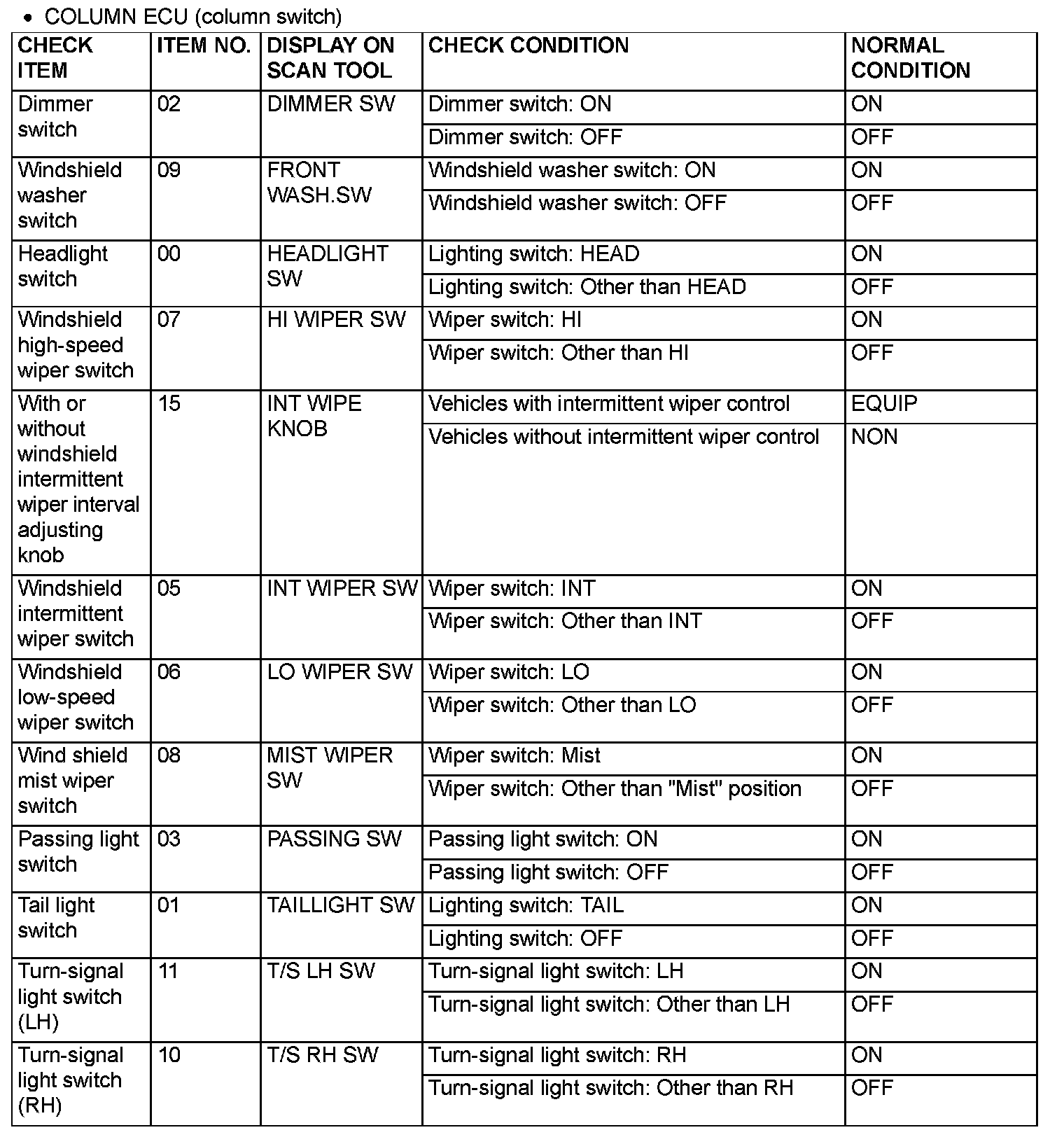 COLUMN ECU (column switch)