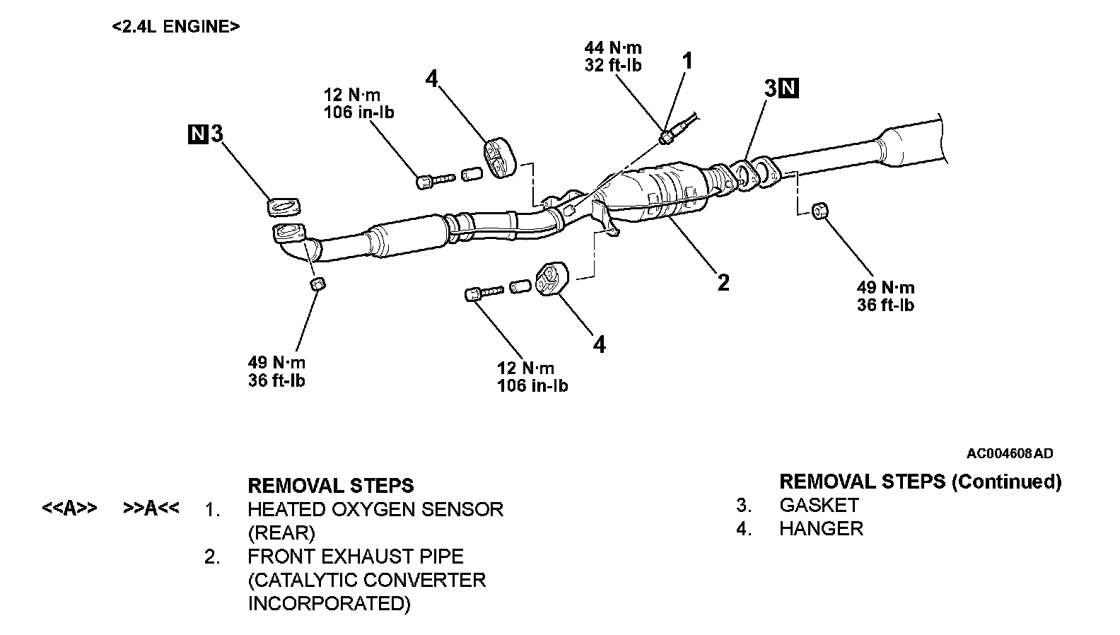 <> HEATED OXYGEN SENSOR (REAR)/LEFT BANK HEATED OXYGEN SENSOR (REAR)/RIGHT BANK HEATED OXYGEN SENSOR (REAR)/RIGHT BANK HEATED OXYGEN SENSOR (FRONT) REMOVAL