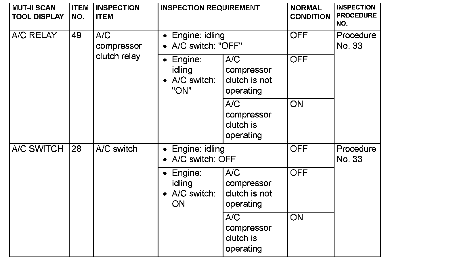 Data List Reference Table & Normal Scan Data Values