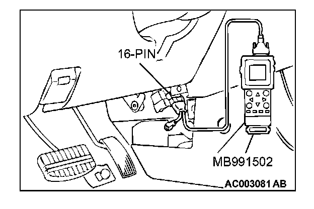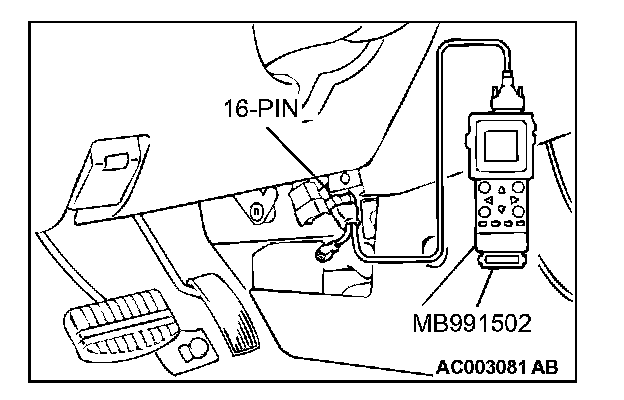 CAUTION: To prevent damage to scan tool MB991502, always turn the ignition switch to the "LOCK" (OFF) position before connecting or disconnecting scan tool MB991502.