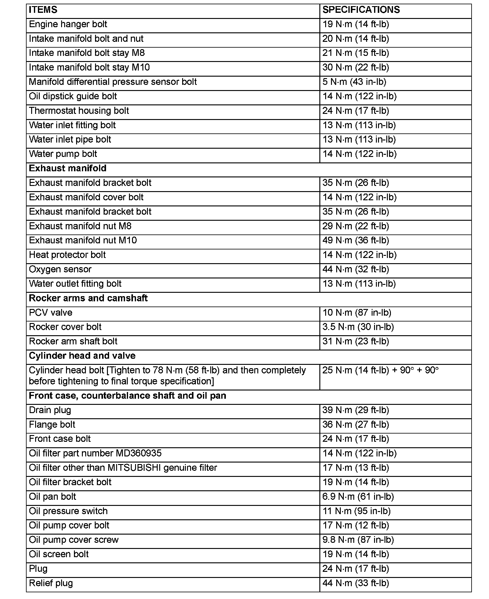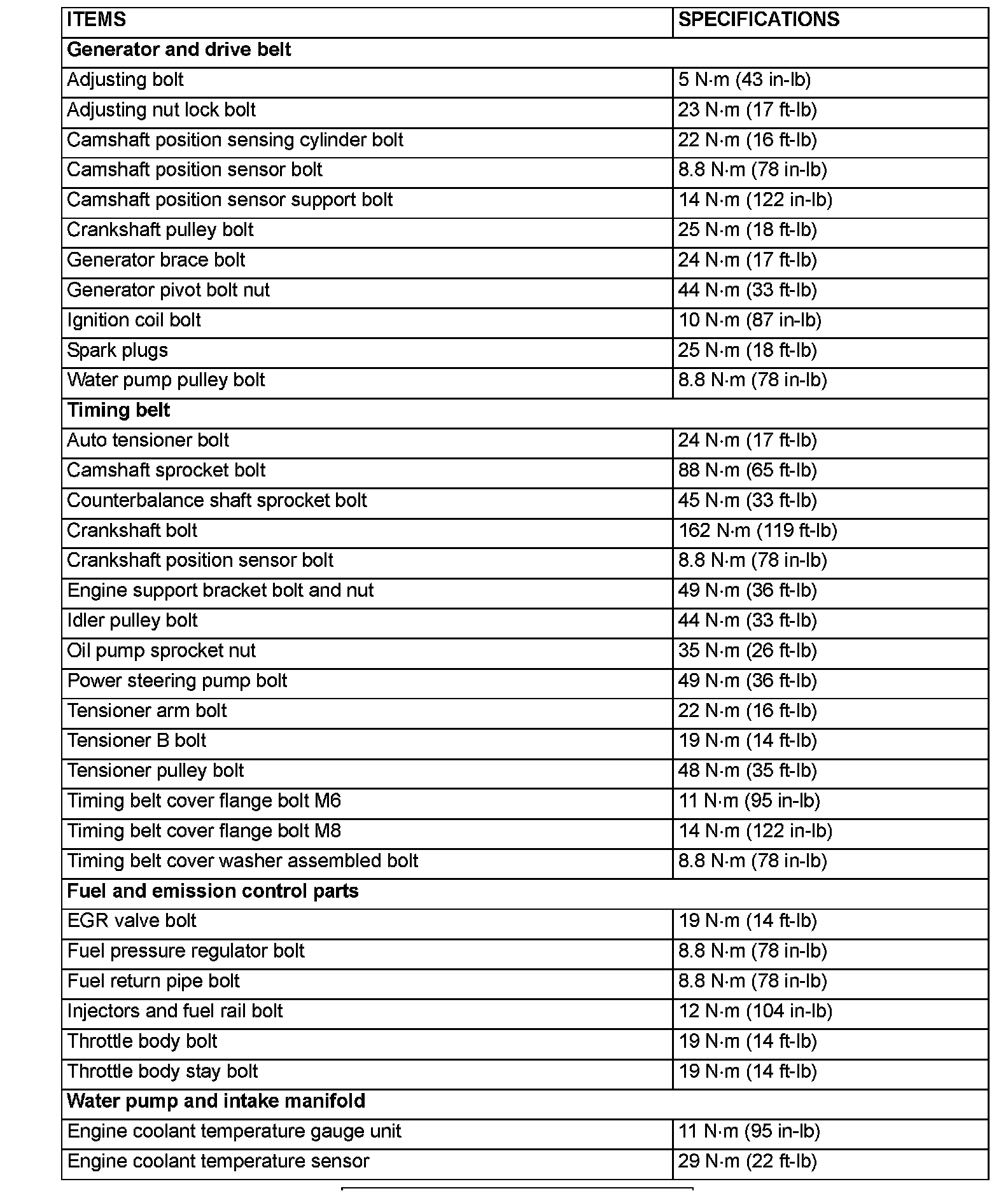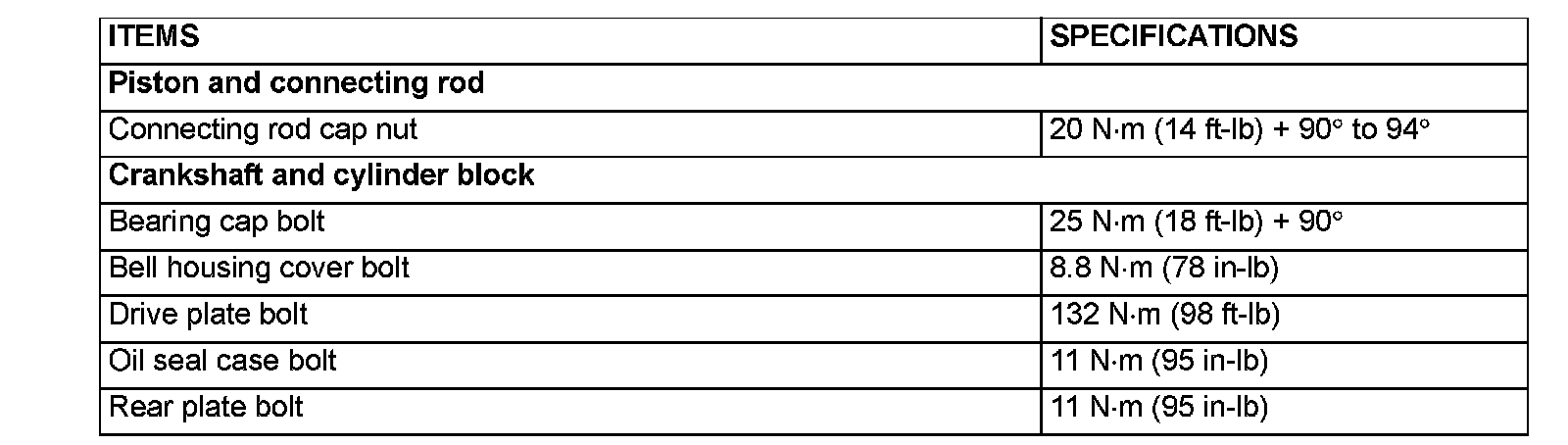 Torque Specifications