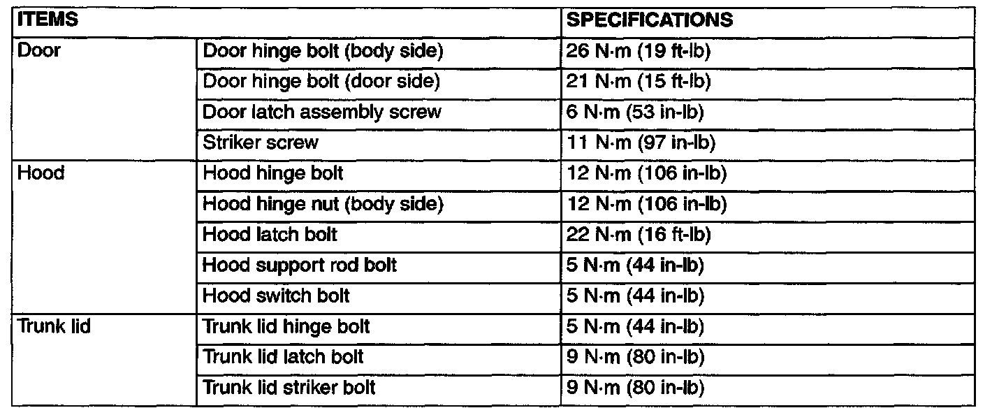 Fastener Tightening Specifications: