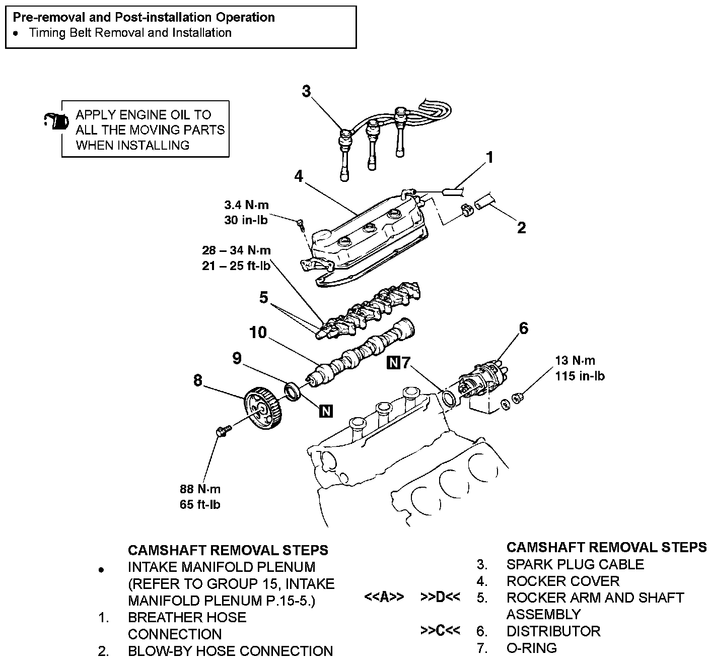 CAMSHAFT AND CAMSHAFT OIL SEAL REPLACEMENT W/ RELATED COMPONENTSPart 1 Of 2: