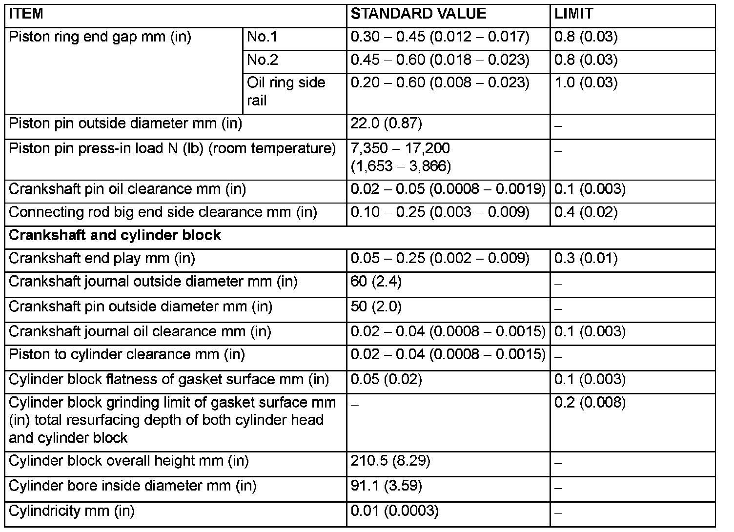Engine-Overhaul Specifications