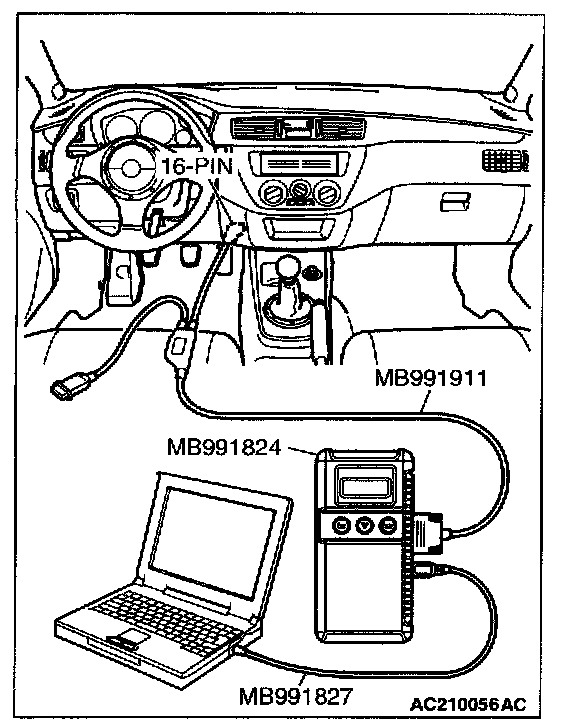 1. Connect scan tool MB991502 to the 16-pin data link connector.