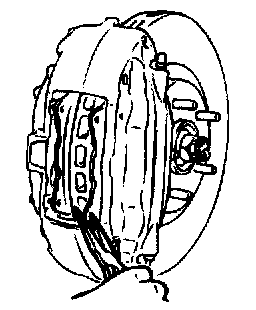 NOTE: The brake pads have indicators that contact the brake disc when the brake pad thickness becomes 2 mm (0.08 inch), and emit a squealing sound to warn the driver.