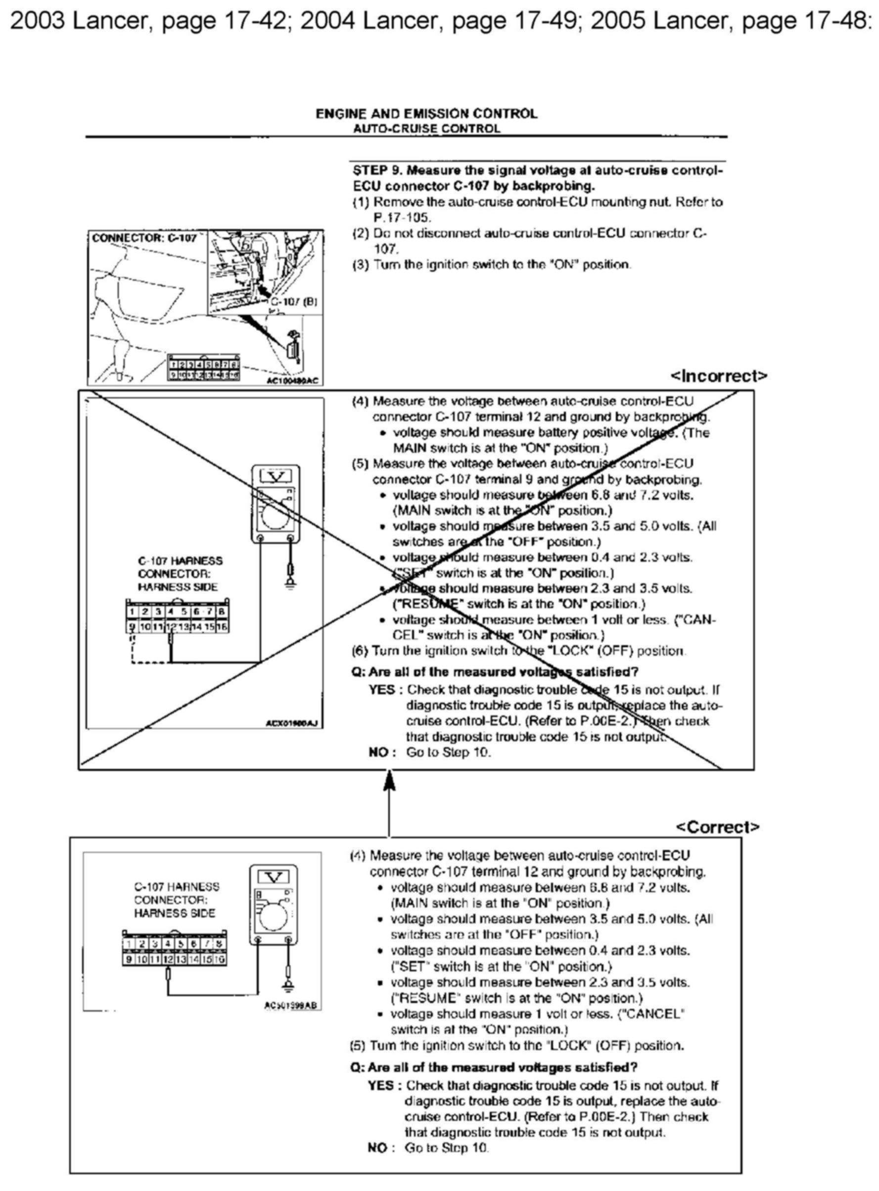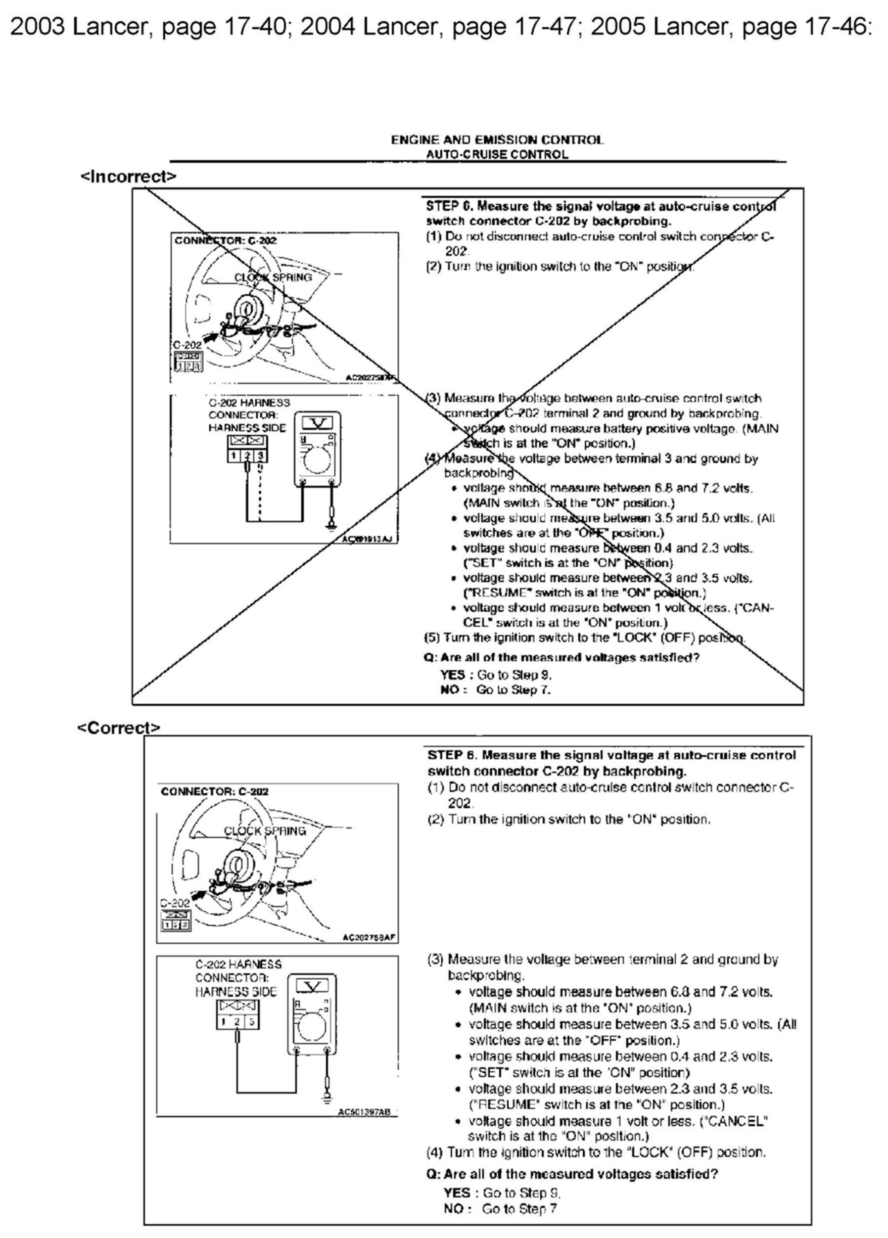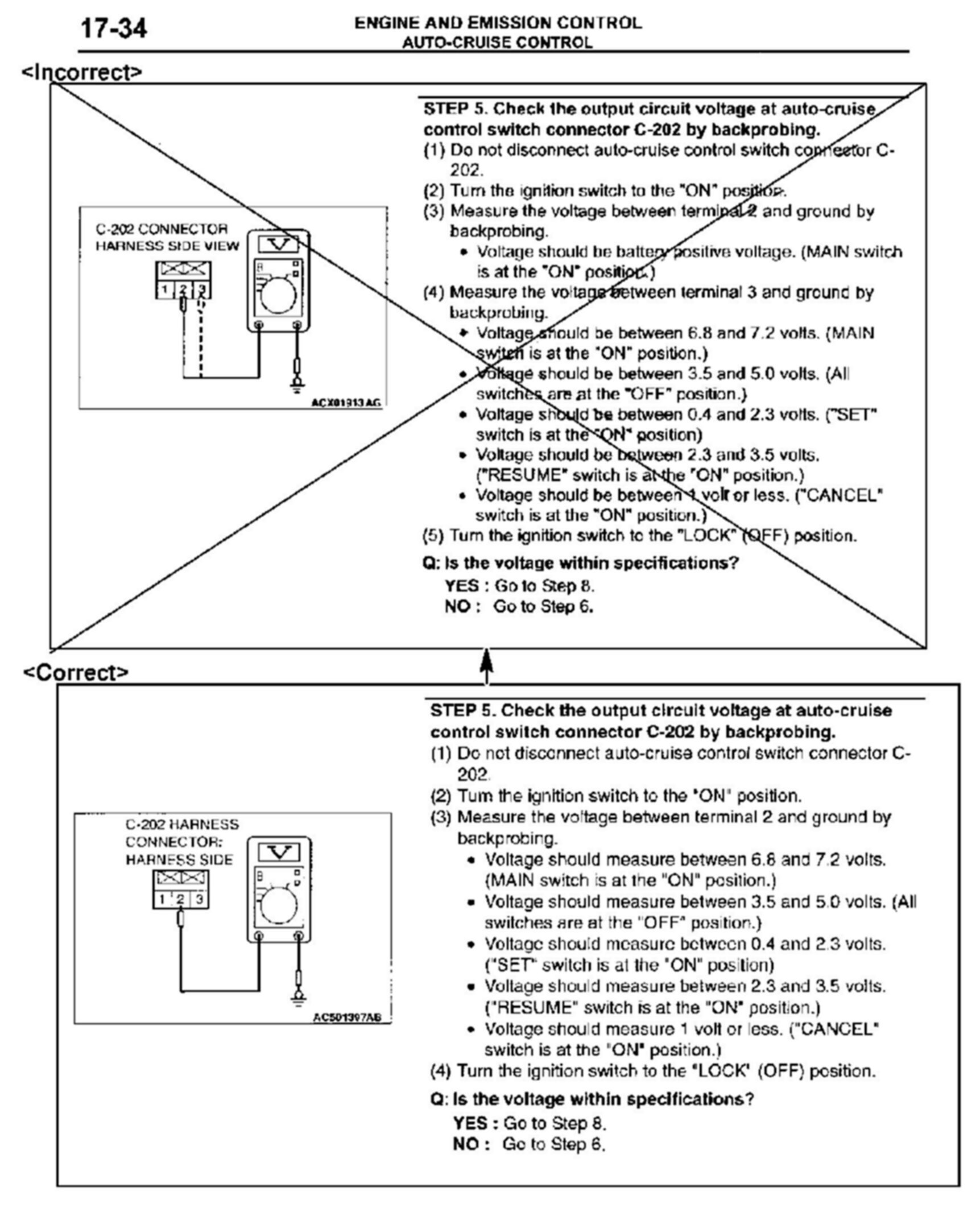 Cruise control system diagnosis procedures are incorrect in the affected service manual pages. This bulletin contains corrected cruise control diagnosis procedures.