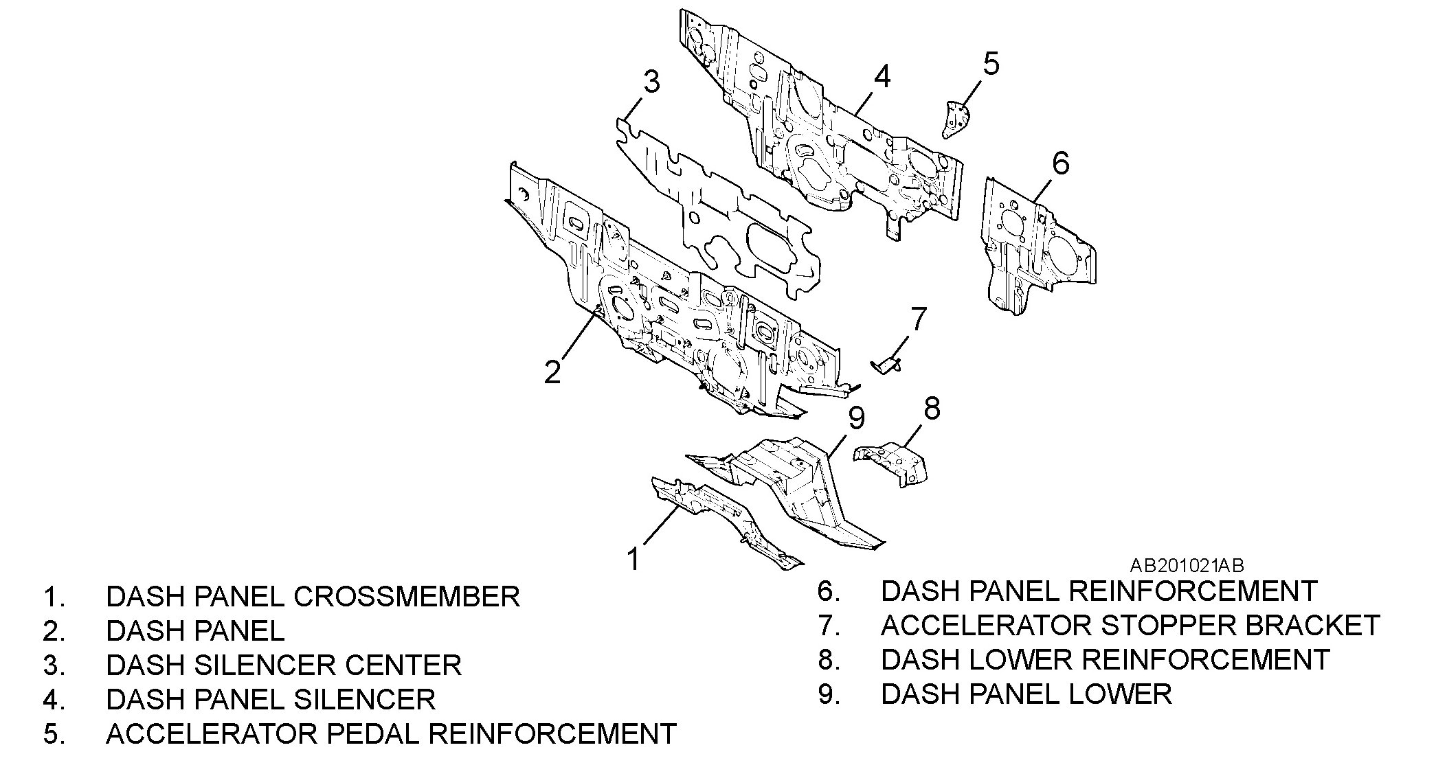 DASH PANEL- A dash panel crossmember has been added and the thickness of the dash panel lower has been increased to improve collision stability.