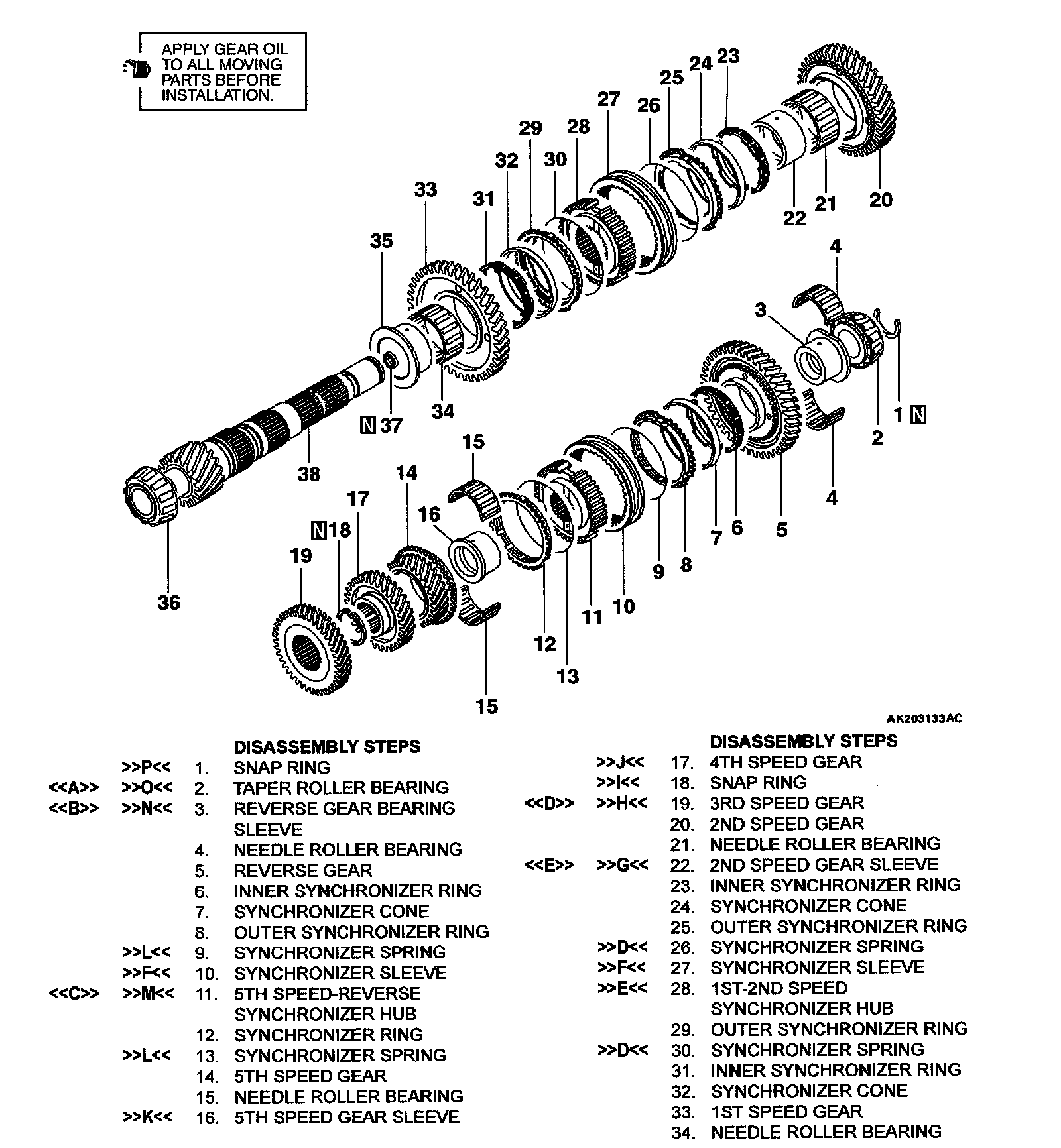 OUTPUT SHAFT OVERHAUL W/ RELATED COMPONENTS