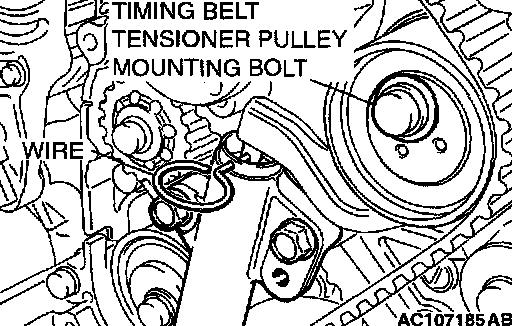 CAUTION: When tightening the mounting bolts, ensure that the timing belt tensioner pulley does not rotate with the bolts. Allowing it to rotate with the bolts can cause deficient tension of the belt.
