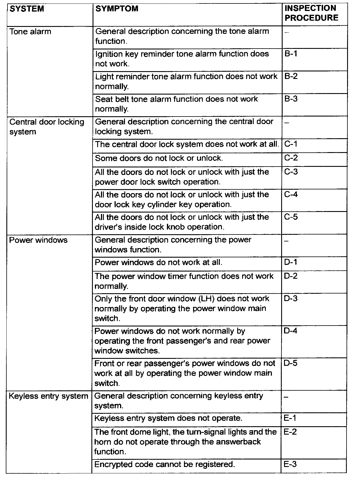 Symptom Chart <Function System> Part 2: