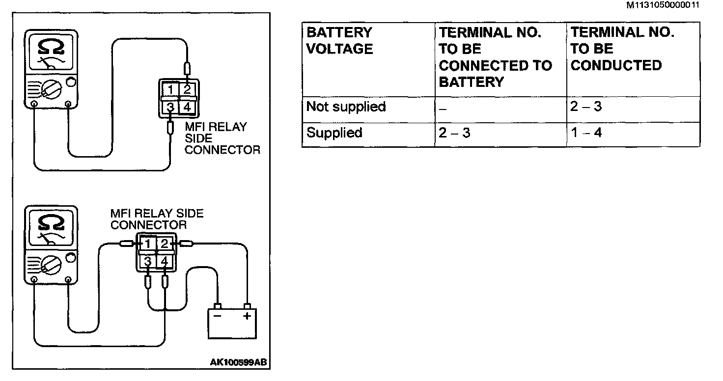 Multiport Fuel Injection (MFI) Relay Continuity Check:
