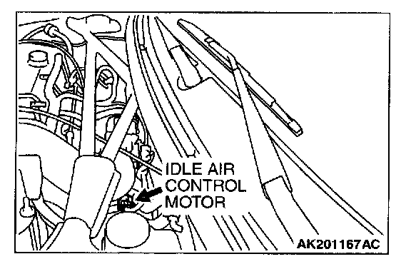 2. Check that the operation sound of the IAC motor can be heard after the ignition is switched to the "ON" position (but without starting the engine).
