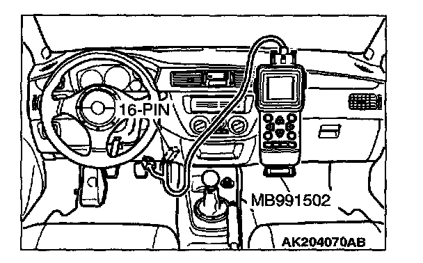 1. Connect scan tool MB991502 or MB991958 to the data link connector.