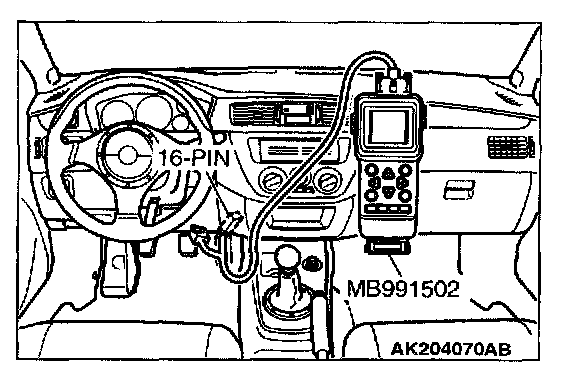 1. Connect scan tool MB991502 or MB991958 to the data link connector.