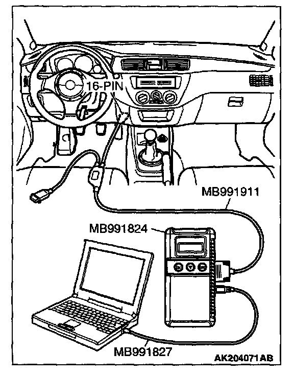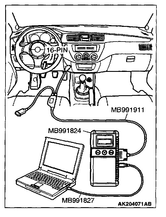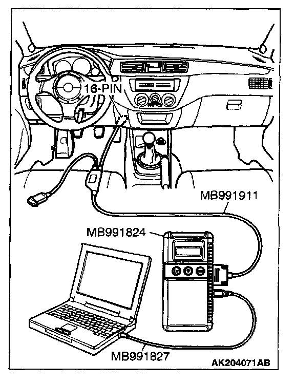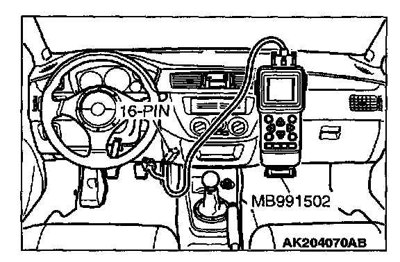 1. Connect scan tool MB991502 or MB991958 to the data link connector.