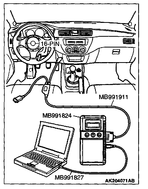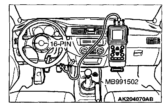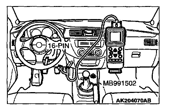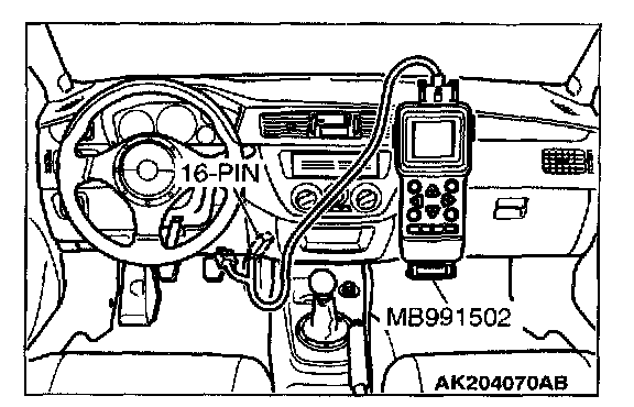 1. Connect scan tool MB991502 or MB991958 to the data link connector.