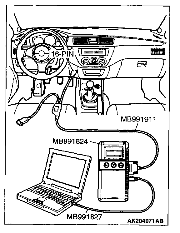 1. Connect scan tool MB991502 or MB991958 to the data link connector.
