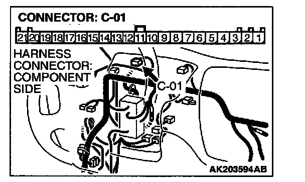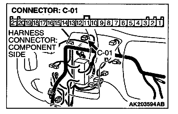 STEP 3. Check connector C-01 at the combination meter for damage.