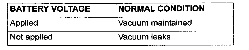 4. Check air tightness by applying a vacuum with voltage applied directly from the battery to the orvr vent valve module and without applying voltage.