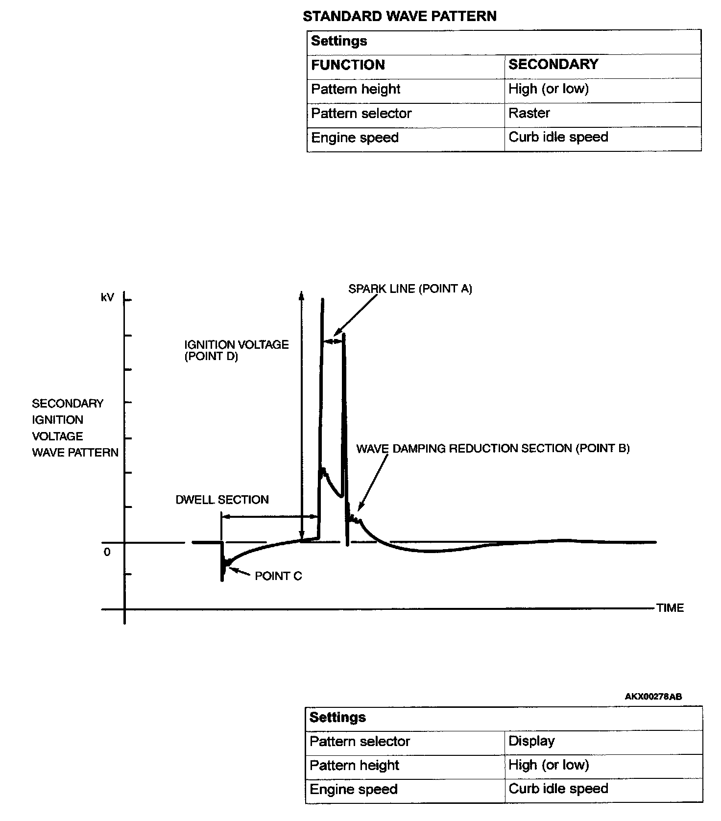 IGNITION SECONDARY VOLTAGE WAVE PATTERN CHECK USING AN OSCILLOSCOPEMEASUREMENT METHOD