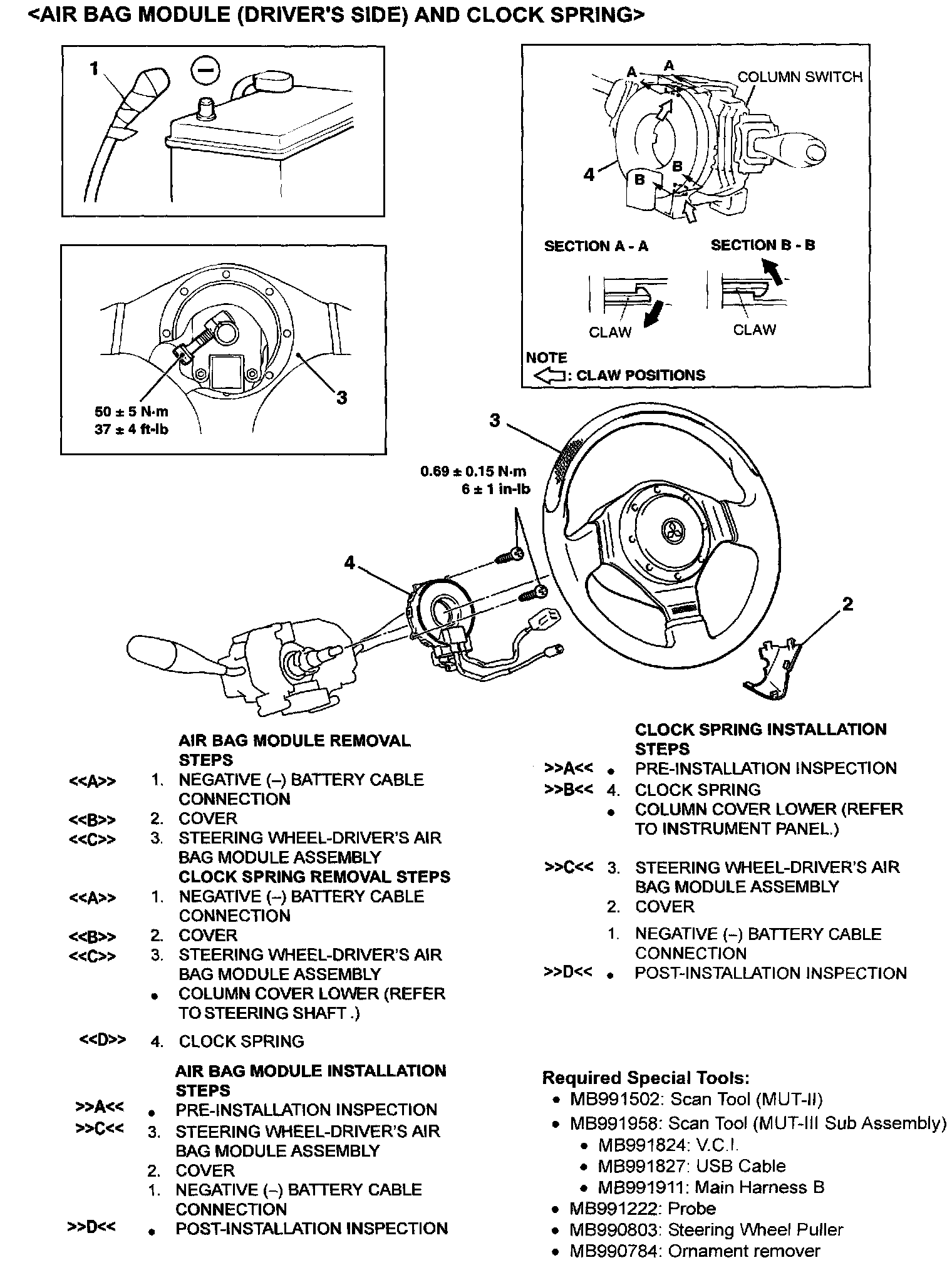 Clock spring screw 0.69 ± 0.15 N.m (6 ± 1 in-lb)