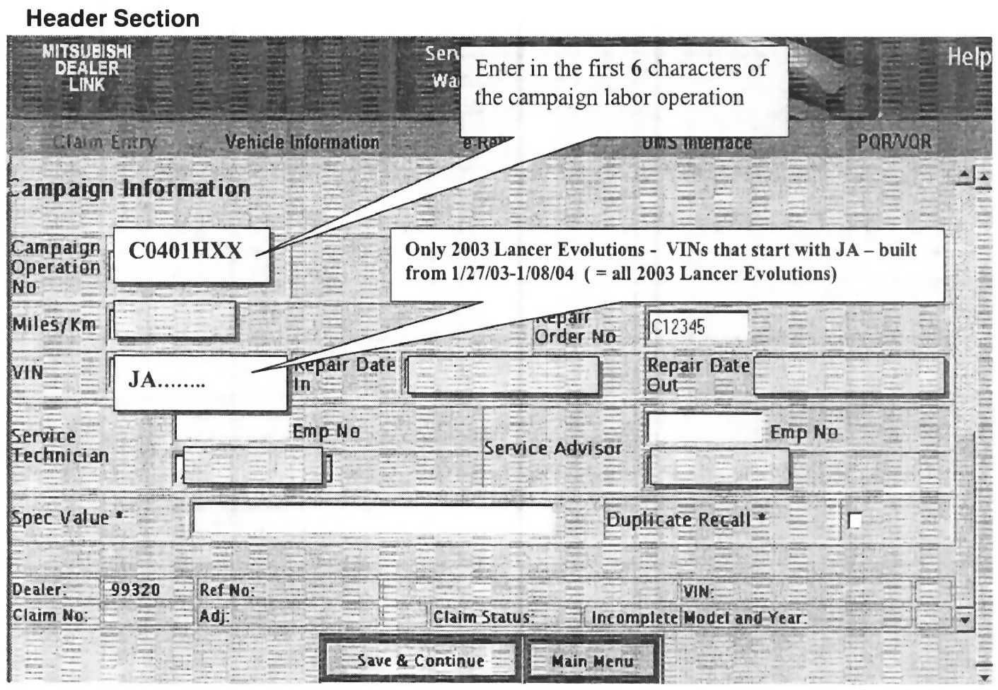 2. Check on the Warranty Superscreen to verify that the vehicle is an affected VIN for this campaign and that this campaign procedure has not already been completed.