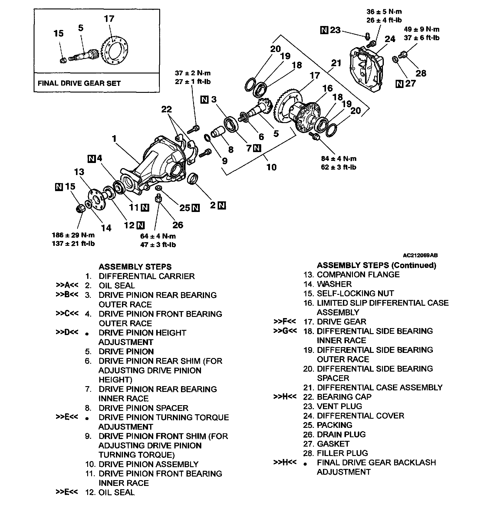 >>H<< BEARING CAP INSTALLATION/FINAL DRIVE GEAR BACKLASH ADJUSTMENT