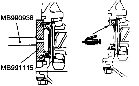 Use special tools MB990938 and MB991380 to press-fit the oil seal.