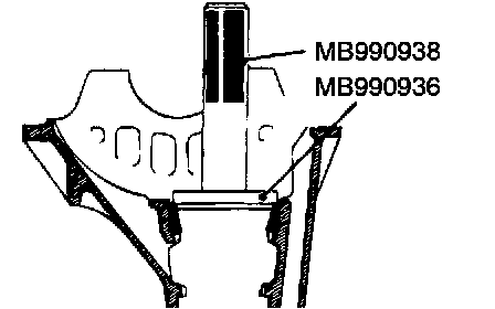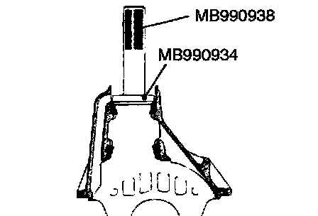 Use special tools MB990938 and MB990934 to press-fit the drive pinion front bearing outer race.