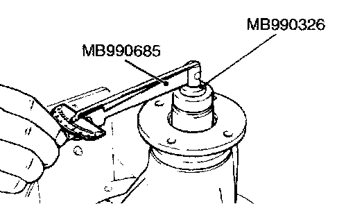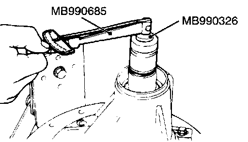 7. Use special tools MB990685 and MB990326 to measure the drive pinion turning torque (with drive pinion oil seal) to verify that the drive pinion turning torque complies with the standard value.