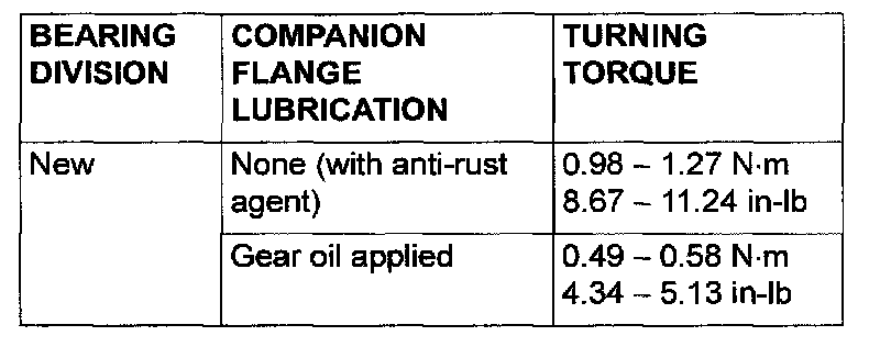NOTE: Because the special tool cannot be turned one turn, turn it several times within the range that it can be turned; then, after fitting to the bearing, measure the turning torque.