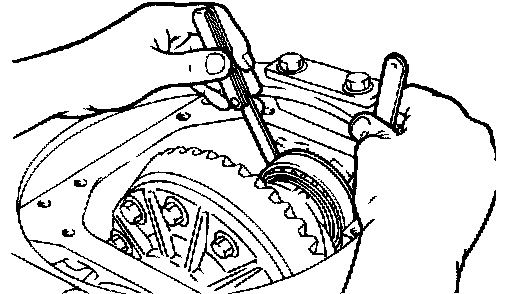 12. If drive gear runout exceeds the limit, remove the differential case and then the drive gears, moving them to different positions and reinstall them.
