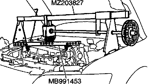 2) Set special tool MB991453 to hold the engine/transaxle assembly.