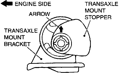Install the transaxle mount stopper so that the arrow points as shown in the illustration