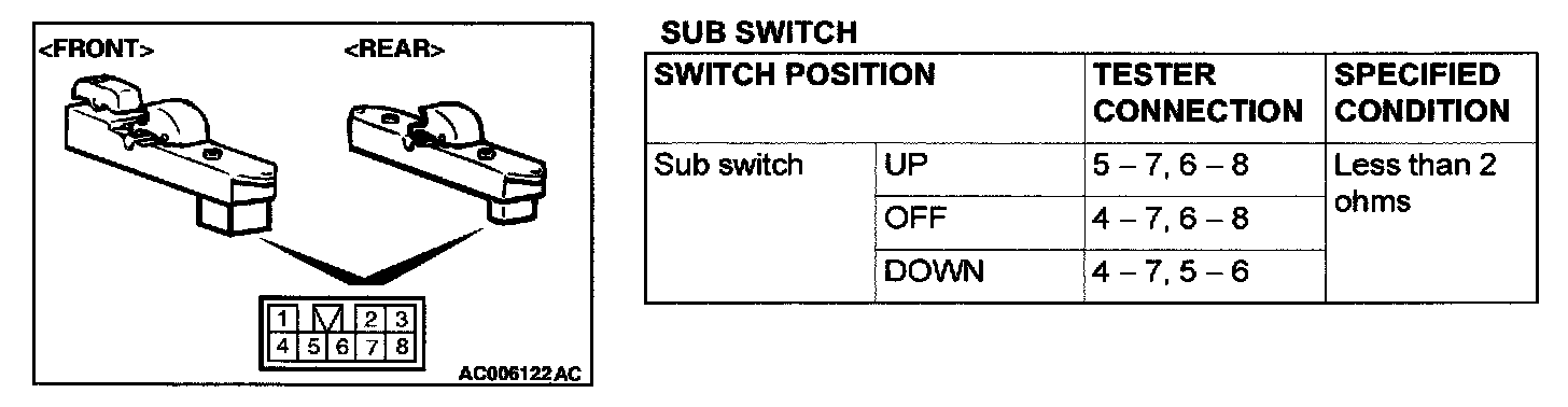 Power Window Switch Continuity CheckPower Window Main Switch: