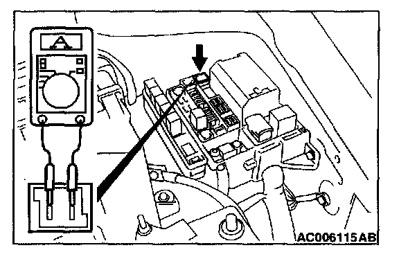1. Remove the power window fuse and connect an ammeter as shown in the illustration.