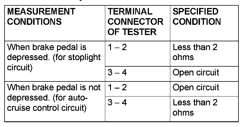 Brake Switch (Cruise Control): Testing and Inspection