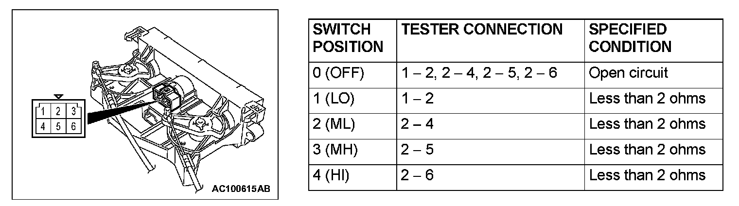 Blower Switch Continuity Check: