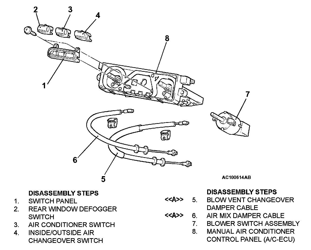 HEATER CONTROL ASSEMBLY AND A/C SWITCH: