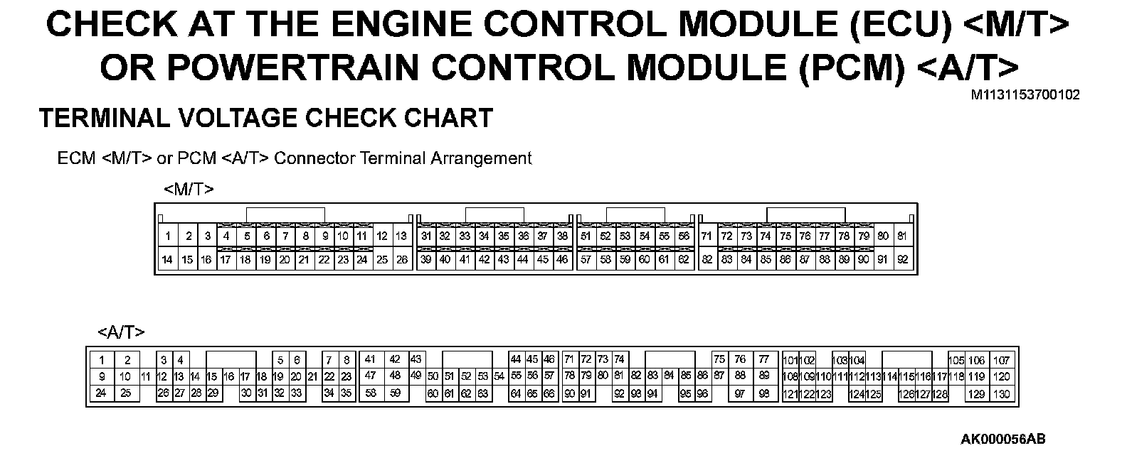 ECM <M/T> Or PCM <A/T> Connector Terminal Arrangement Part 1: