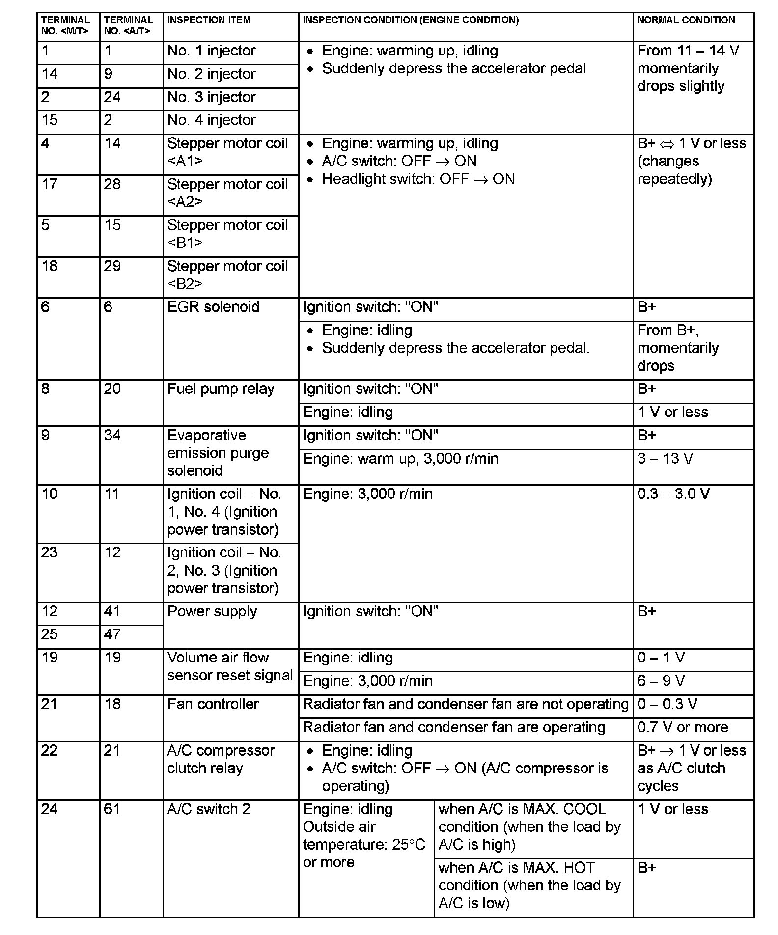 ECM <M/T> Or PCM <A/T> Connector Terminal Arrangement Part 4: