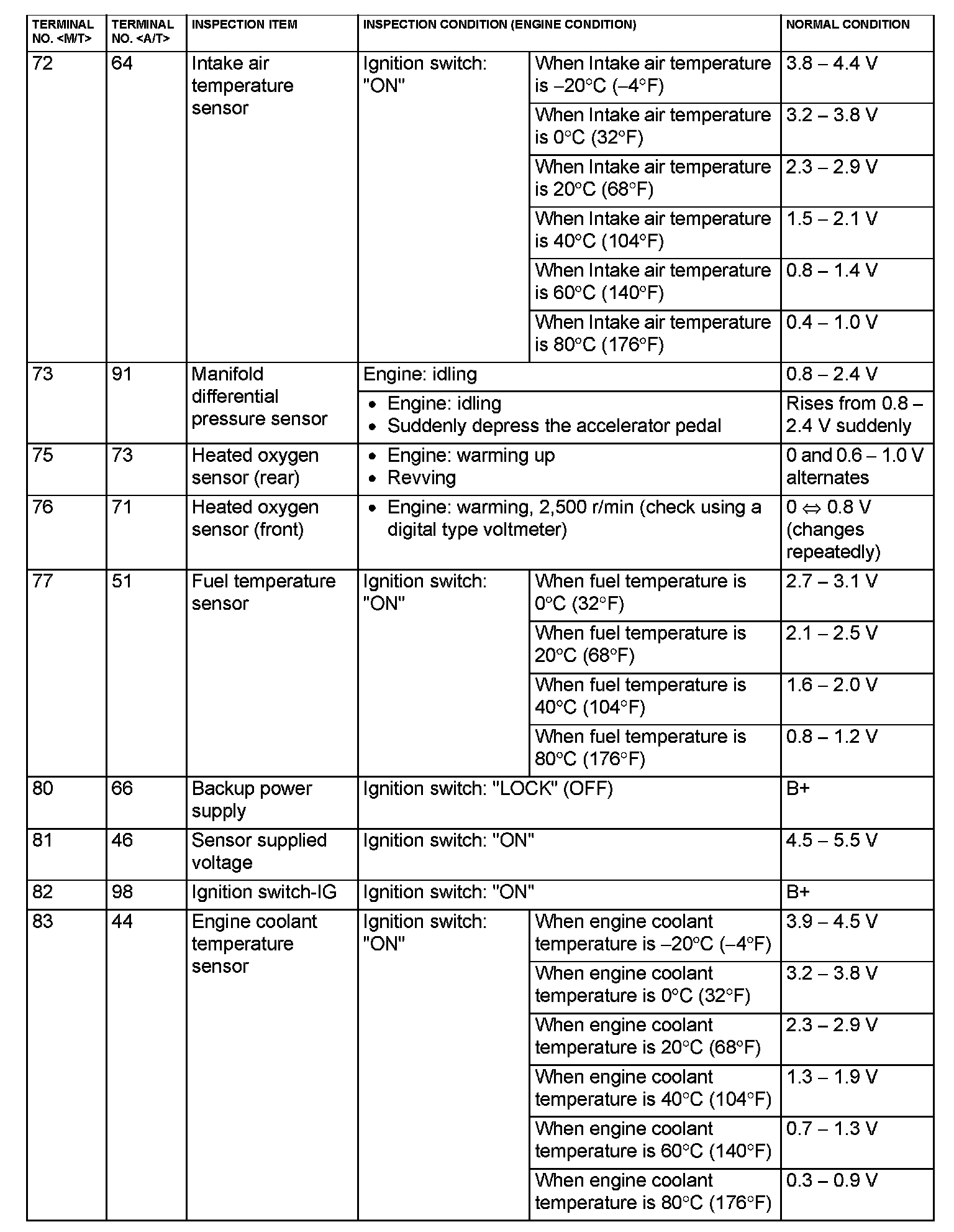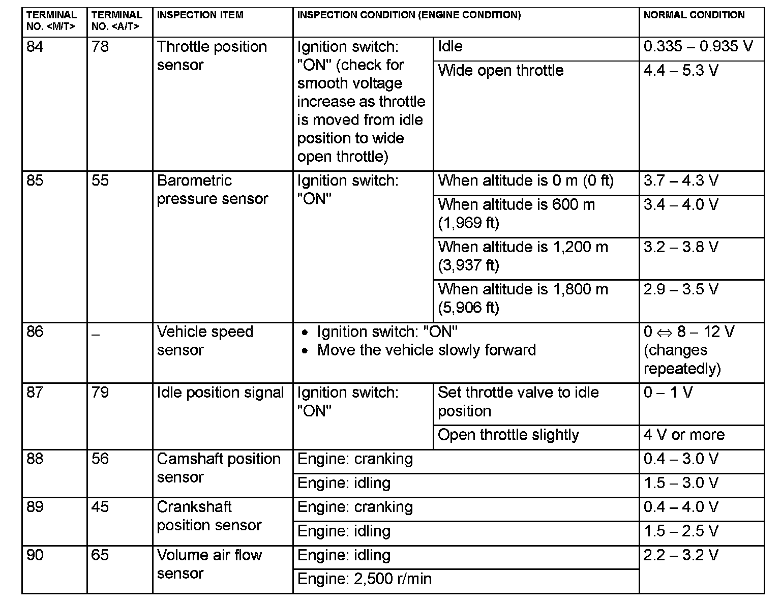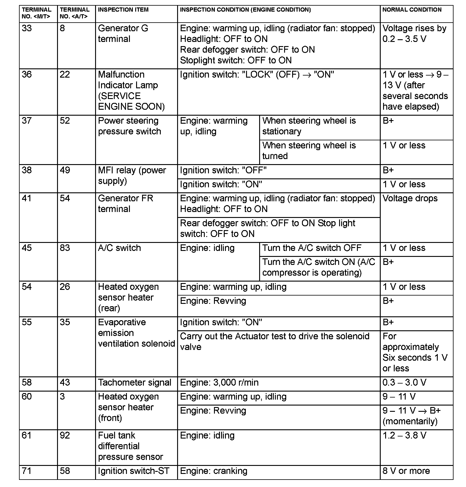 ECM <M/T> Or PCM <A/T> Connector Terminal Arrangement Part 5: