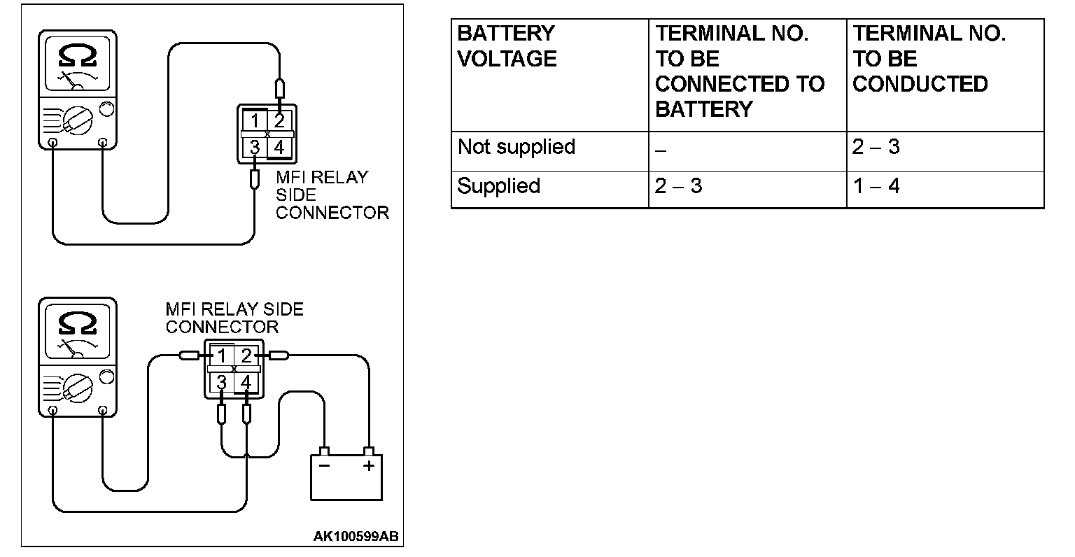 Multiport Fuel Injection (MFI) Relay Continuity Check:
