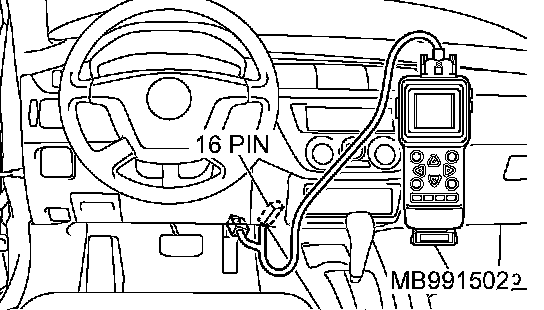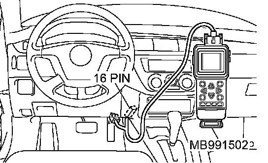 CAUTION: To prevent damage to scan tool M B991502, always turn the ignition switch to the "LOCK" (OFF) position before connecting or disconnecting scan tool MB991502.
